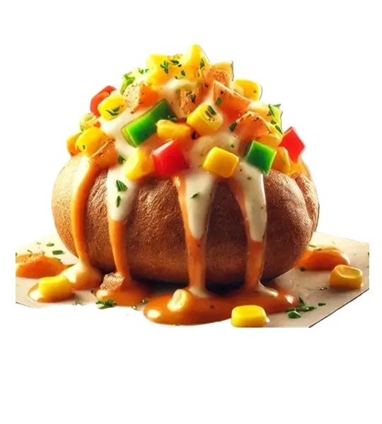 مع الهلابينو والمضاف اليه جبنة الشيدر وسلطة الخضار وحبات الذرة