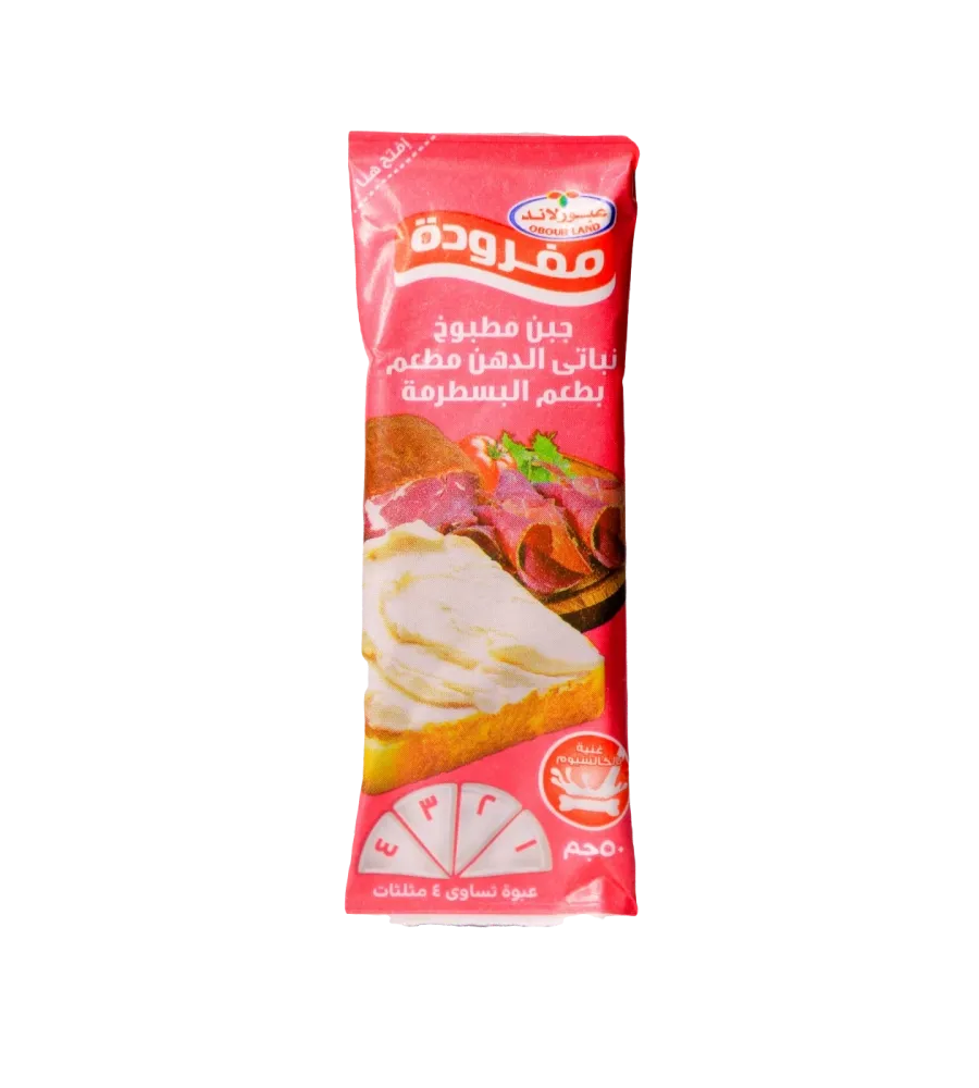 جبنة مطبوخة نباتي الدهن(عبورلاند) مفرودة بنكهة البسطرمة 50 جم
