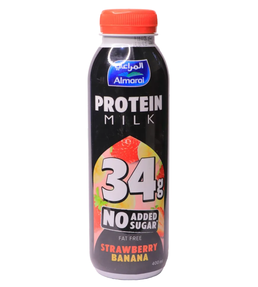 حليب المراعي بروتين بنكهة فراولة وموز خالي من الدسم 400مل