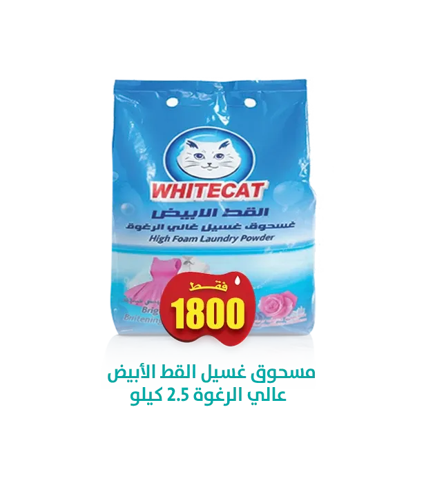 مسحوق غسيل عالي الرغوة القط الابيض برائحة الزهور 2.5 كجم