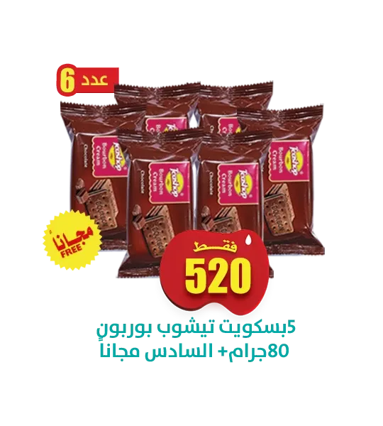 5 حبات بسكويت تيشوب بوربون كريم 80 جم+حبة مجانا