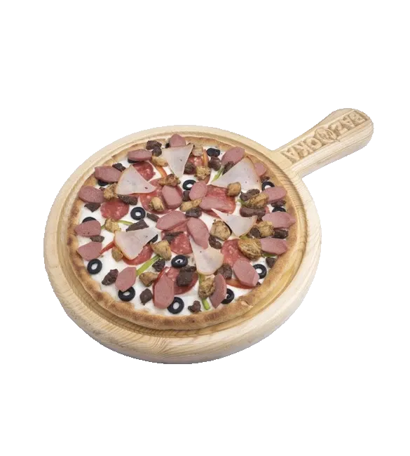 زيتون أسود +طماطم +بيبار+ماشروم+دجاج+لحم +سلامي +رومي مدخن +نقانق +موزريلا