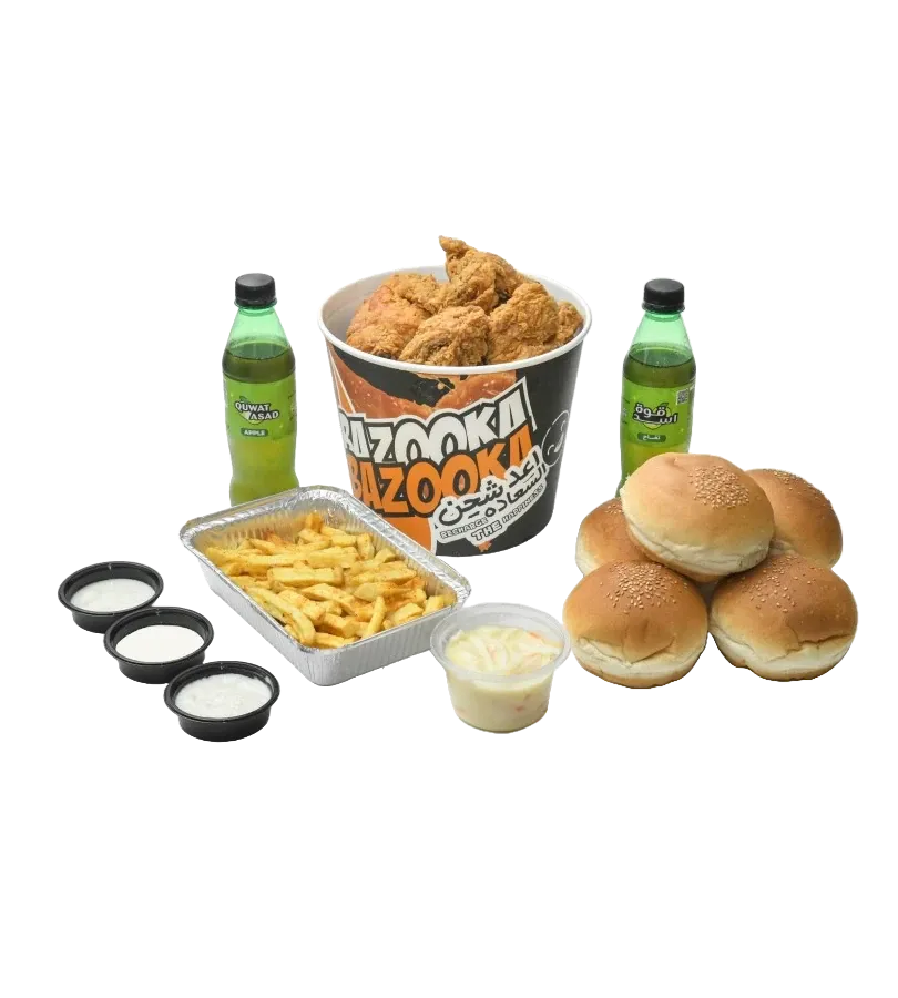 15 قطع بروست + 3 مشروب غازي + التوابع ( 7خبز + 1طبق شبس كبير + 1طبق شبس وسط + 2سلطة كول سول حجم وسط + 5ثوم + 4كاتشب + 4شطة )