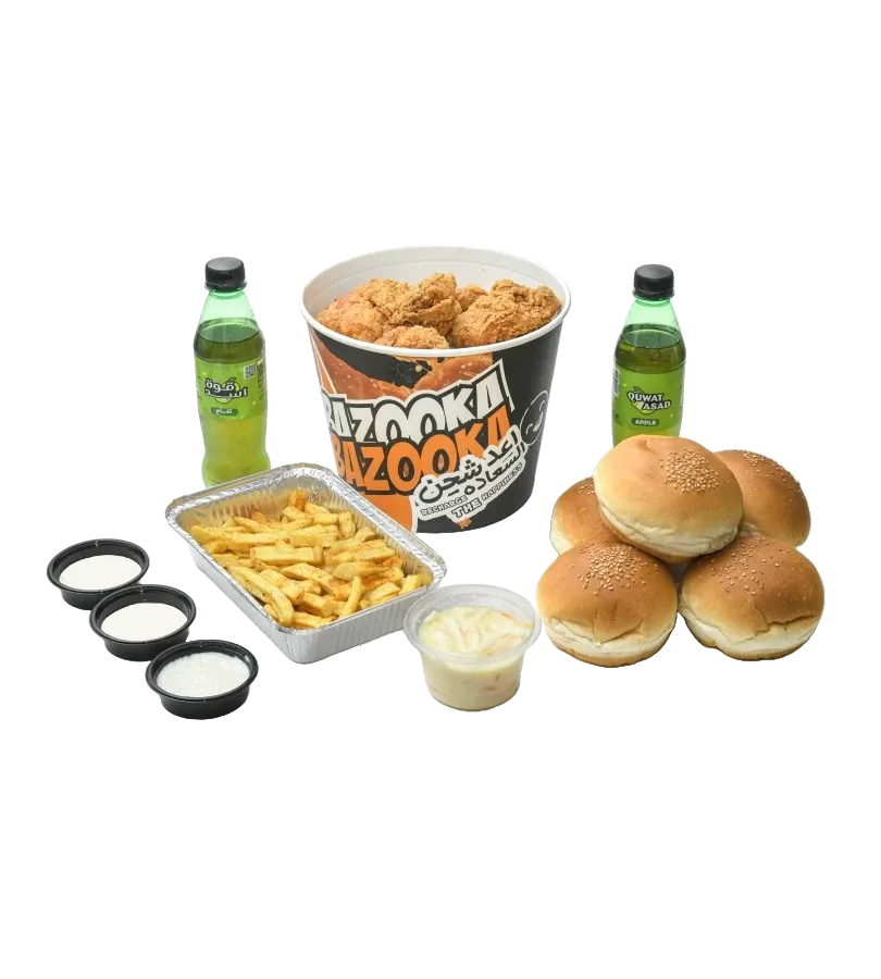 18 قطع بروست + 3 مشروب غازي + التوابع ( 7خبز + 1طبق شبس كبير + 1طبق شبس صغير + 2سلطة كول سول حجم وسط + 5ثوم + 4كاتشب + 4شطة )