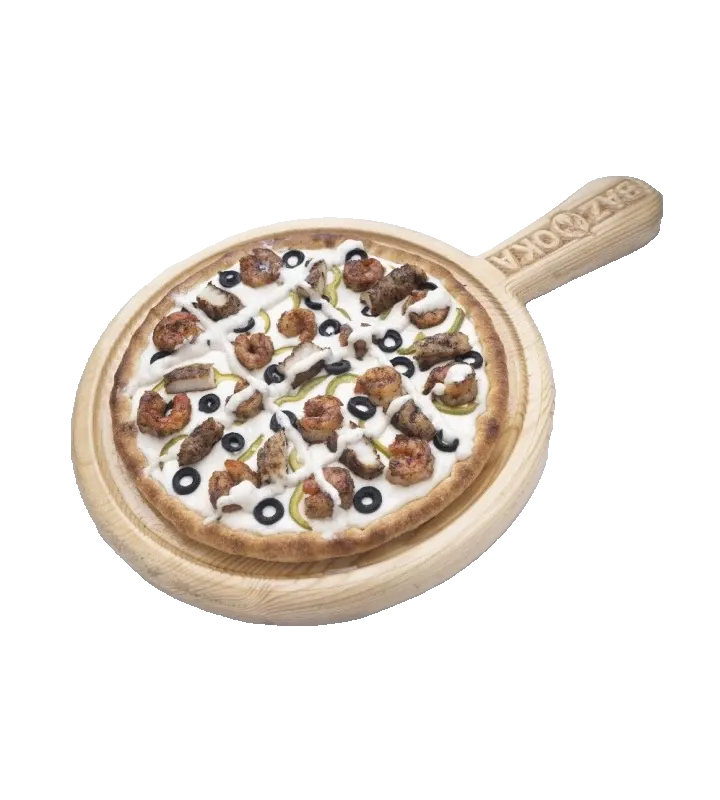 جمبري + سمك + زيتون أسود + بيبار + موزريلا