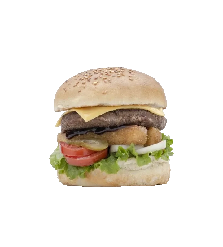 شريحة لحم 150ج + طماطم + خس + موزريلا ستكس + جبنة شرائح + صوص الباربيكيو + مخلل خيار