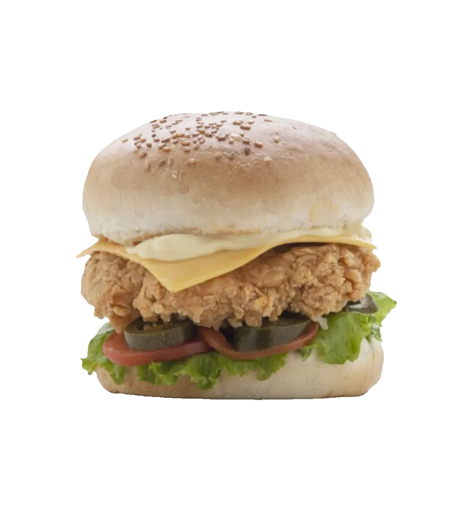 قطع دجاج زنجر 100ج + هني ماسترد صوص + شريحة جبن + طماطم + خس + هلابينو + شبس