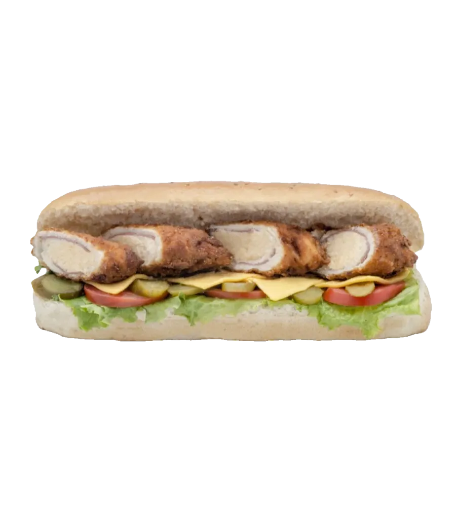 صدور دجاج محشية بجبنة التشيدر واللحم المدخن 150ج + شريحة جبنة تشيدر + طماطم + مخلل