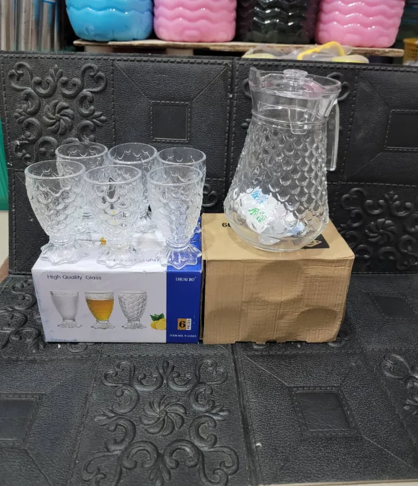 جاك ماء زجاج شكل اناناس مع طقم قلاصه