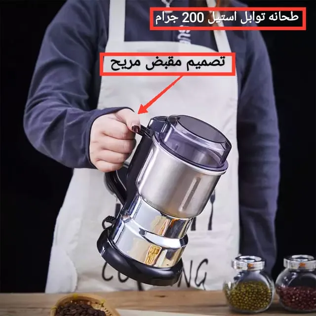 طحانه المكسرات والتوابل الكهرباءمن الاستيل الاصلي الحجم الكبير ذات السعه( 200 جرام)مع مقبض يد جانبي طحانه بهارات وتوابل كهرباء من استيل مع وعاء من الاستالس استيل غير قابل لصدا و4شفرات ستيل حاده لطحن المكسرات والتوابل وغيره ا.